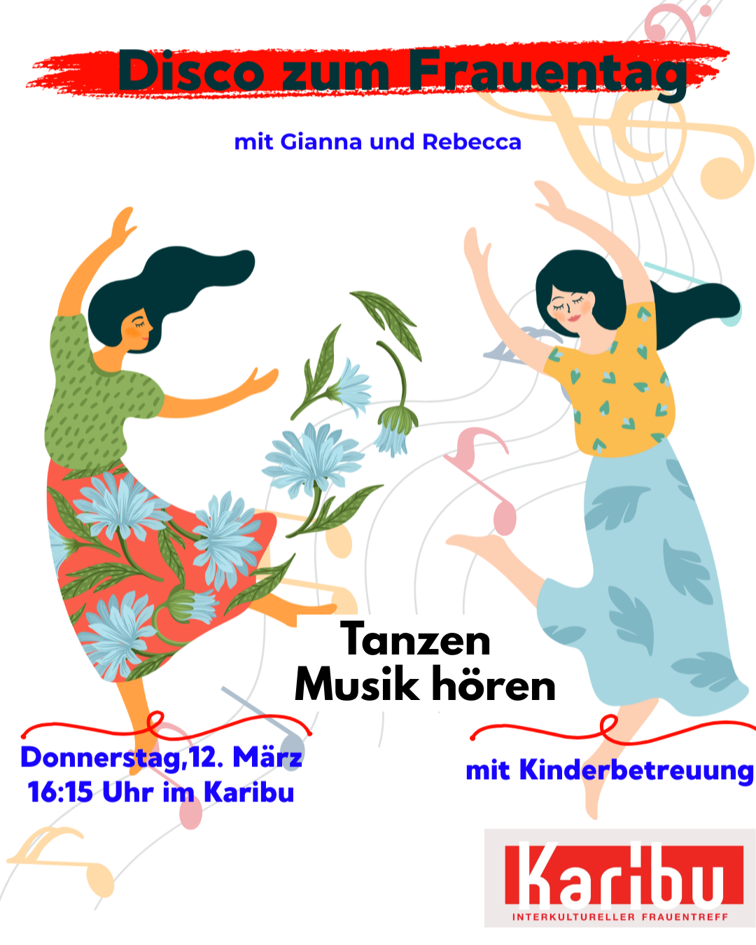 Am Donnerstag, 12. März, von 16.15 - 18 Uhr tanzen wir zum internationalen Tag der Frau (8. März)!